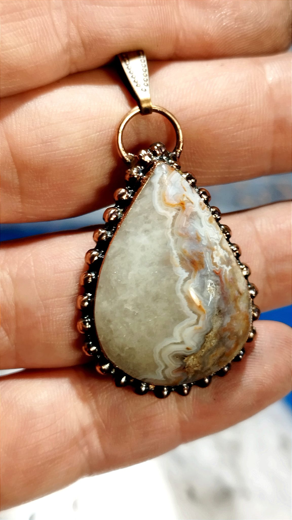 Achát Crazy Mexiko – ručně vyráběný talisman z mědi