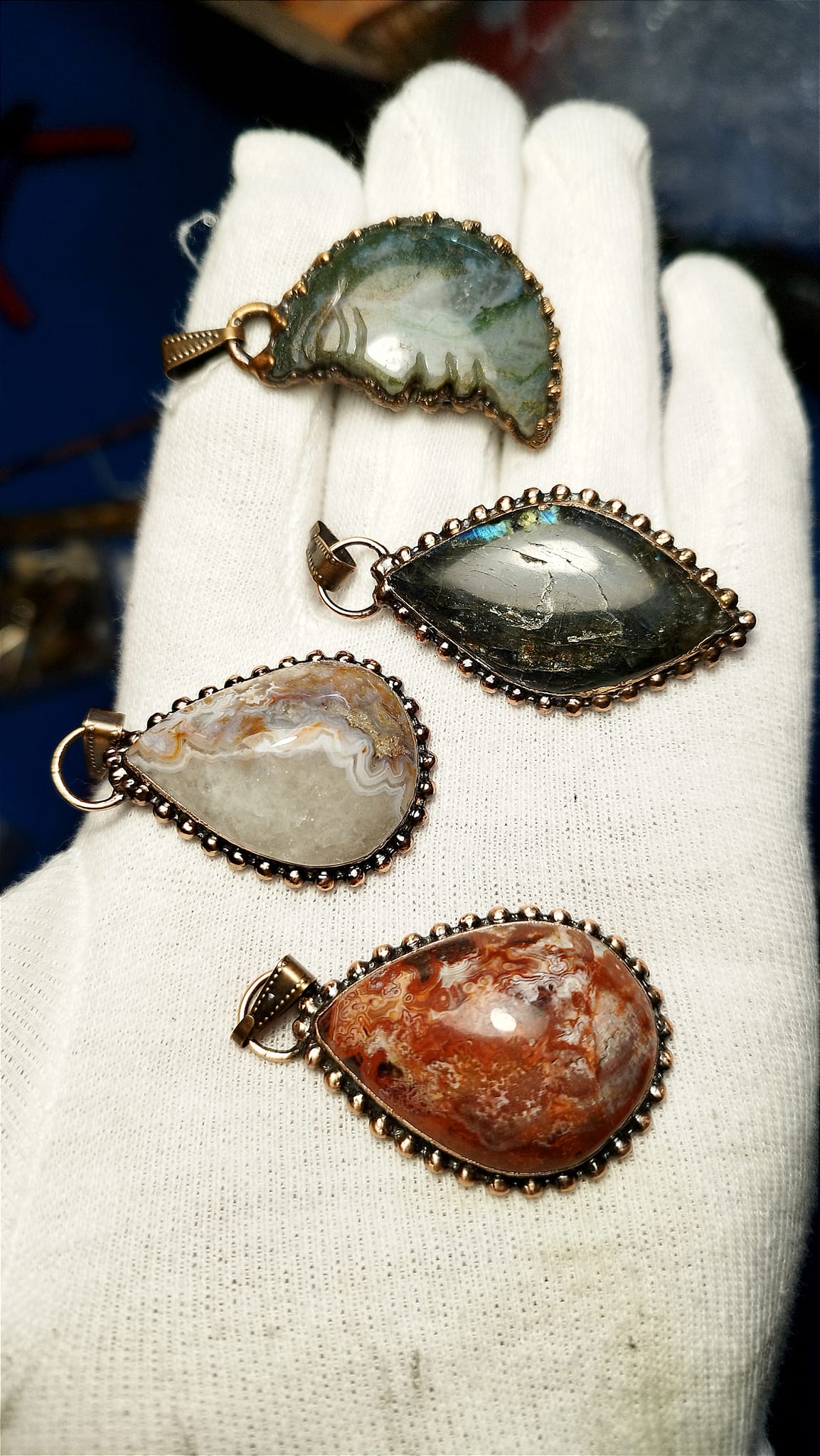 Měď v kombinaci s kamenem zesiluje jeho přirozené vlastnosti a zároveň dodává šperku syrový, přírodní vzhled.