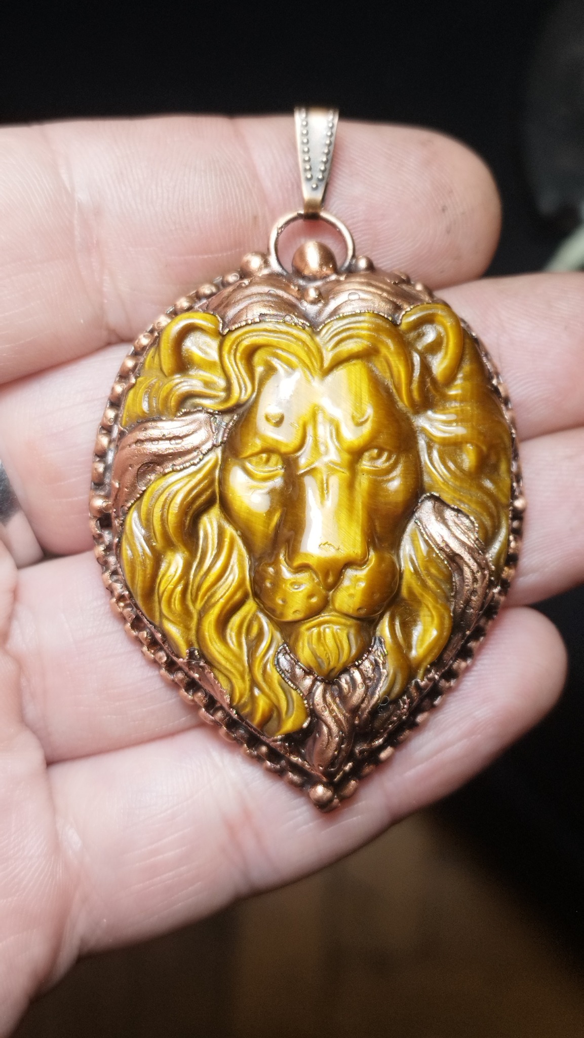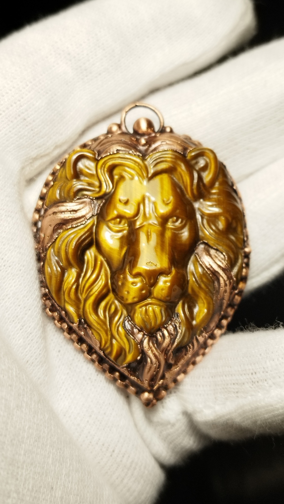 Celý přívěsek je obklopen teplým objetím mědi, pokovené s precizností metodou galvanoplastiky (electroformingu) ⚡.
