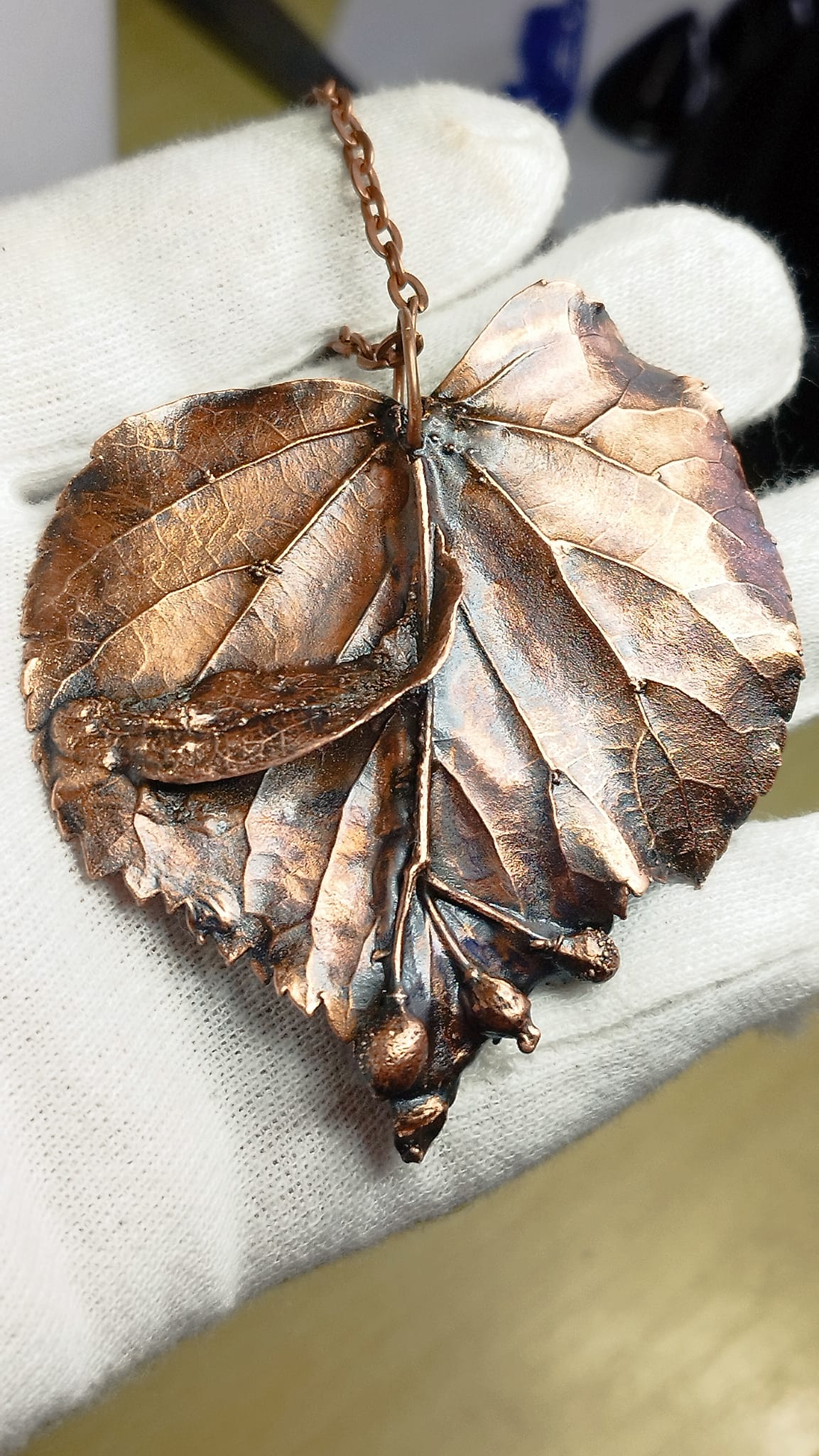 Neopakovatelný šperk jsem vyrobila a ručně zpracovala v mé čarovné dílně unikátní metodou Galvanoplastiky – POKOVENÍ , patinovala a konzervovala speciálním antioxidačním prostředkem