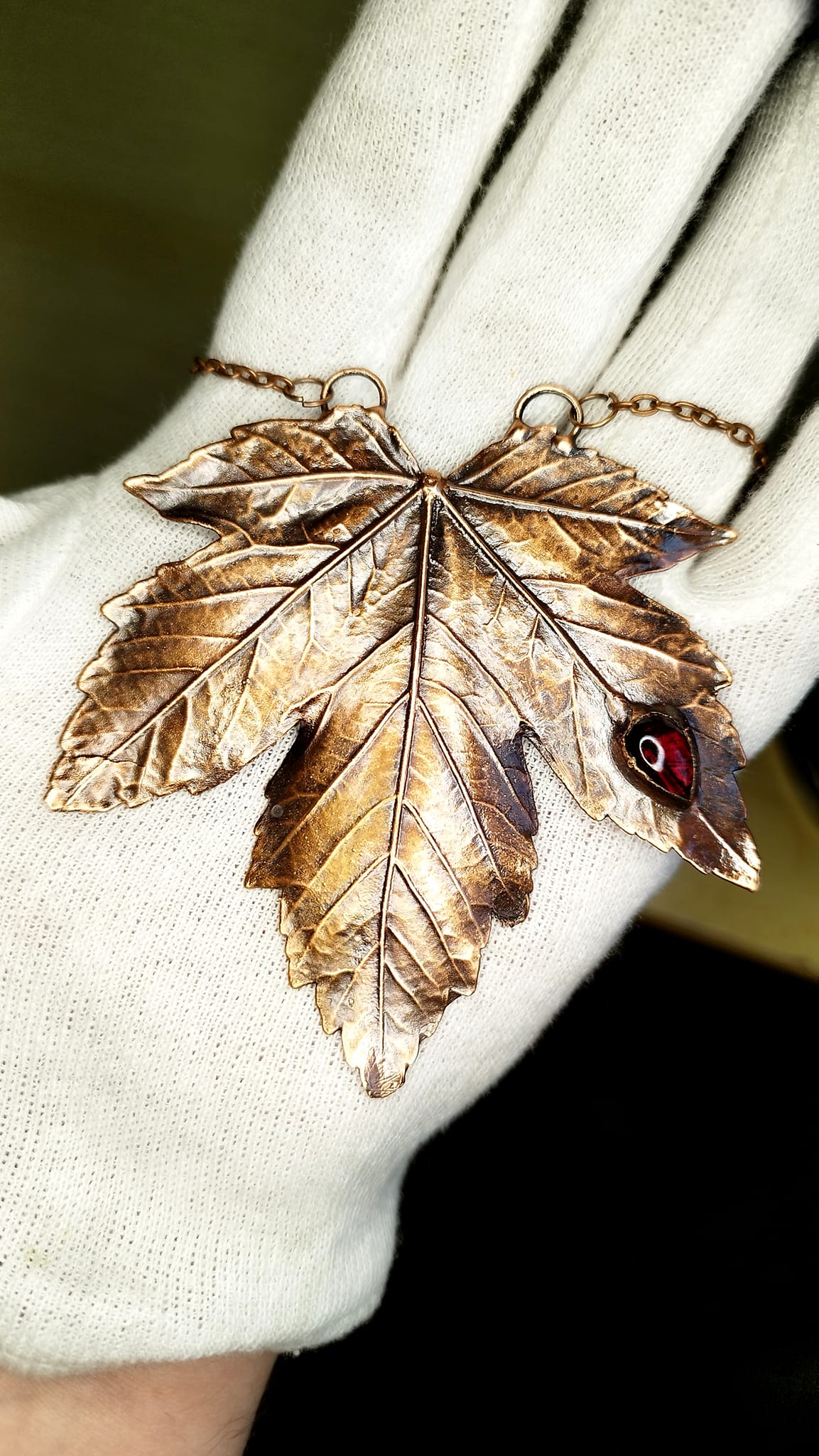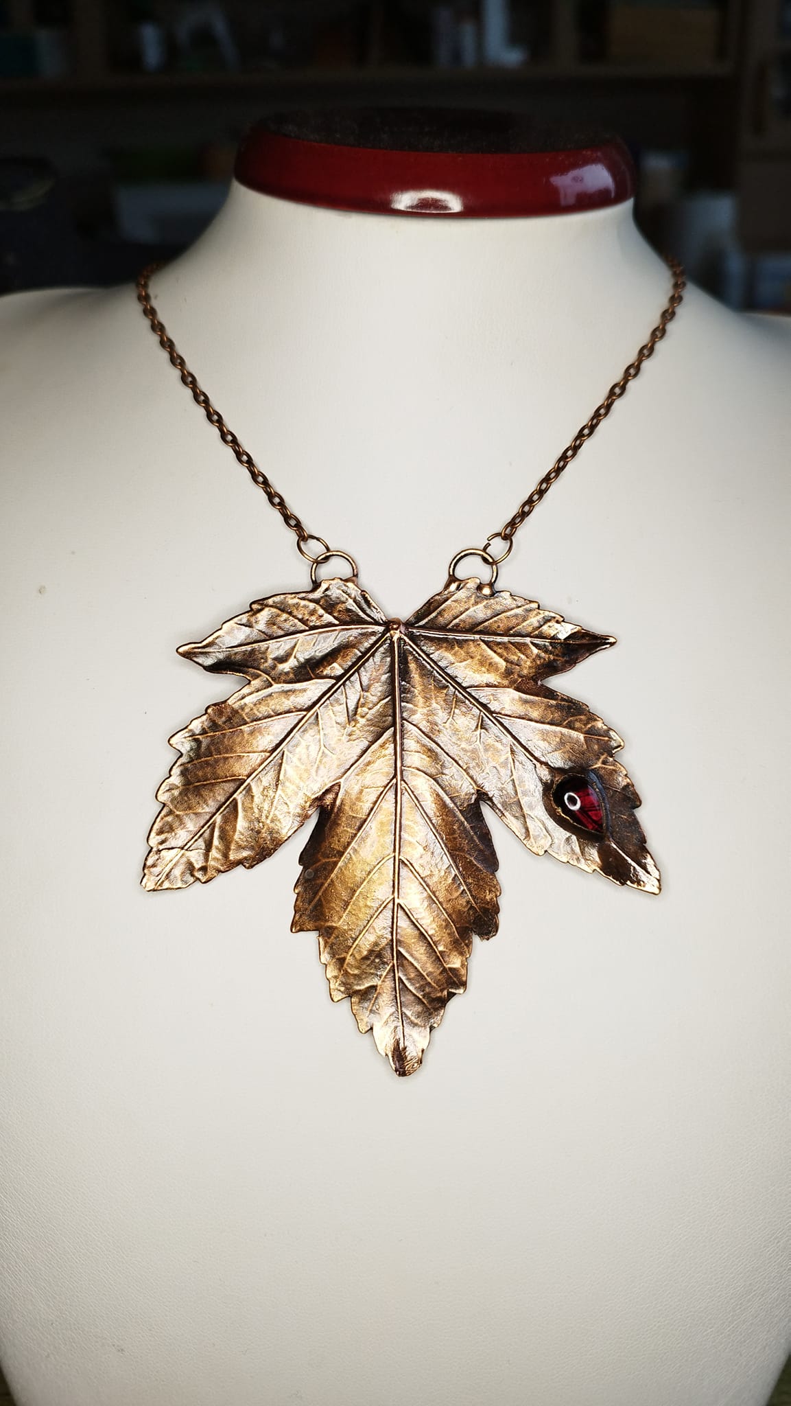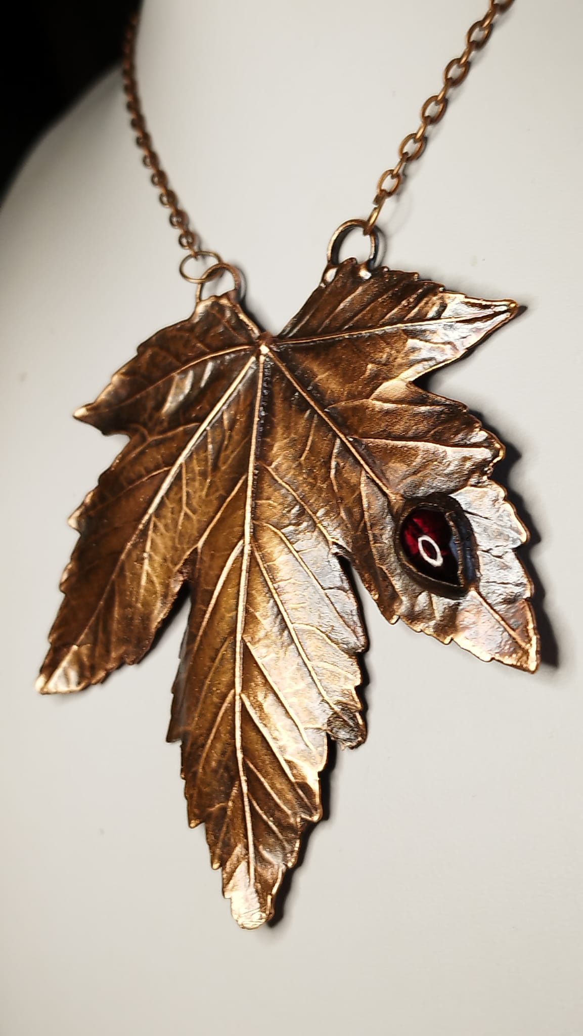 Toužíte po duchovní rovnováze a klidu? Pak k vám bude ladit šperk z listu javoru a kapičkou granátů