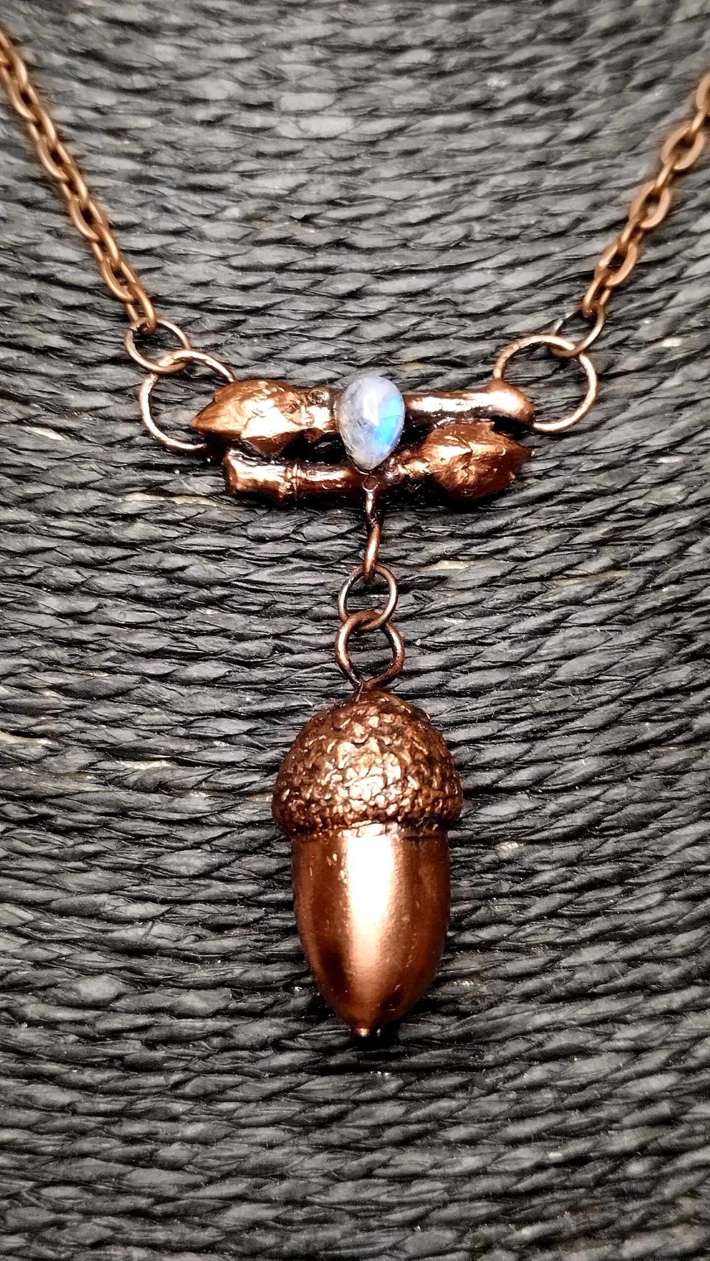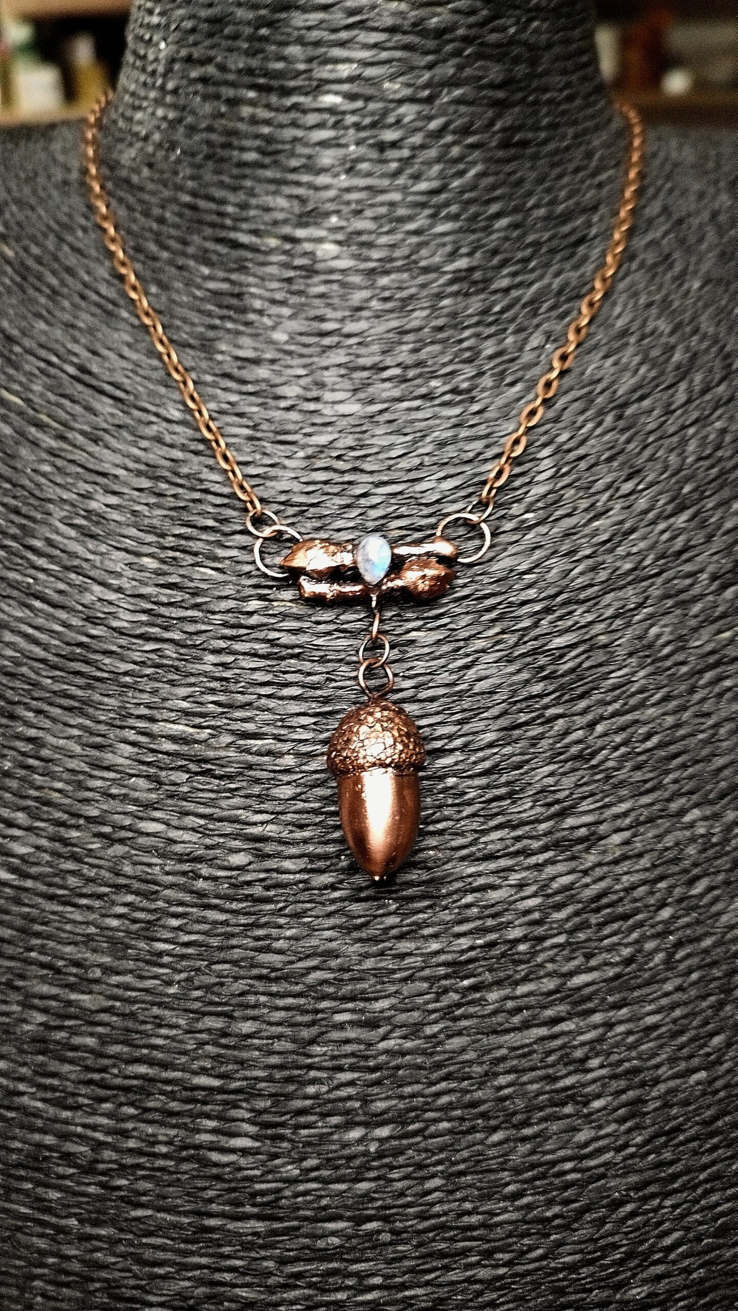 Objevte kouzlo přírody přetavené do jedinečného šperku, který v sobě nese sílu přírodních prvků a alchymii tradičního řemesla. Tento fascinující náhrdelník z autorské dílny Sirius vznikl pomocí techniky galvanoplastiky – procesu, který proměňuje skutečné přírodniny, jako jsou žaludy či větvičky, v dechberoucí kovové šperky. Každý kus je originál, protože konečný výsledek je ovlivněn přírodními detaily a samotným procesem pokovování mědí.