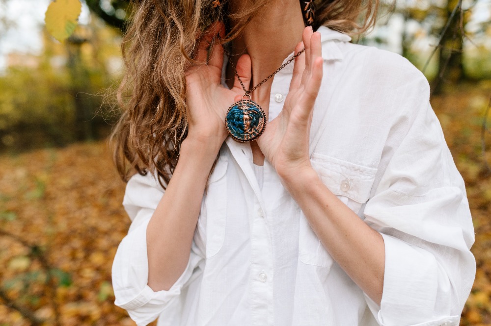 Autorský labradoritový talisman „Medúza“ z dílny Sirius je jedinečný šperk, který propojuje sílu přírodního minerálu, energii mědi a symboliku dávné mytologie. Vznikl jako ochranný a transformační talisman pro ty, kteří jsou připraveni postavit se vlastní síle a projít vnitřní proměnou.