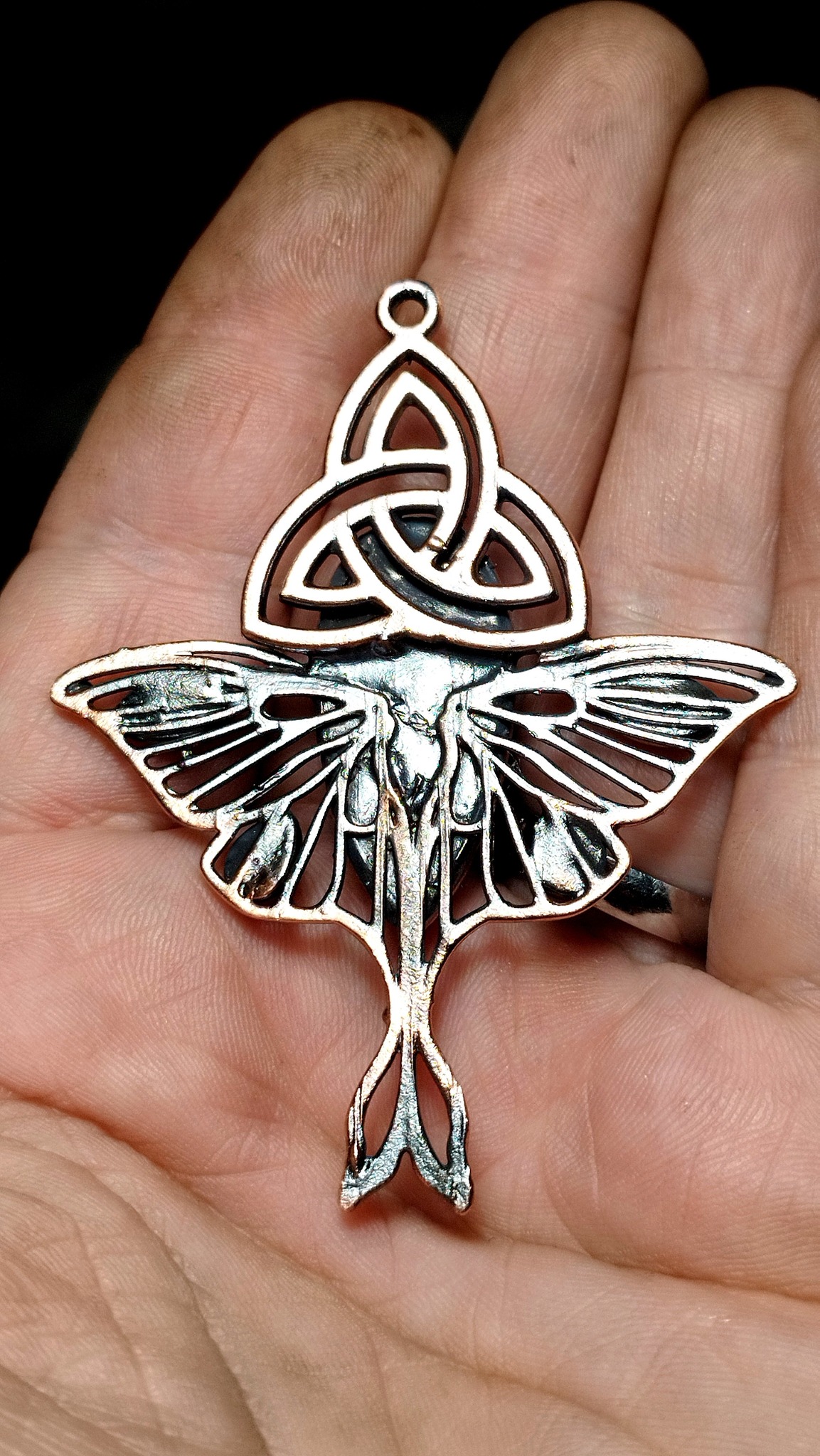 Představujeme vám autorský talisman Noční vize z dílny Sirius, vytvořený jedinečnou technikou galvanoplastiky (elektroformingu), kdy se měď v alchymické symbióze spojuje s přírodními minerály a stává se živoucím nositelem energie. Tento výjimečný šperk v sobě spojuje sílu můřího symbolu, který představuje přechod mezi světlem a temnotou, a prastarý keltský uzel Triquetra, symbol trojjedinosti – ducha, těla a mysli, nebo života, smrti a znovuzrození.