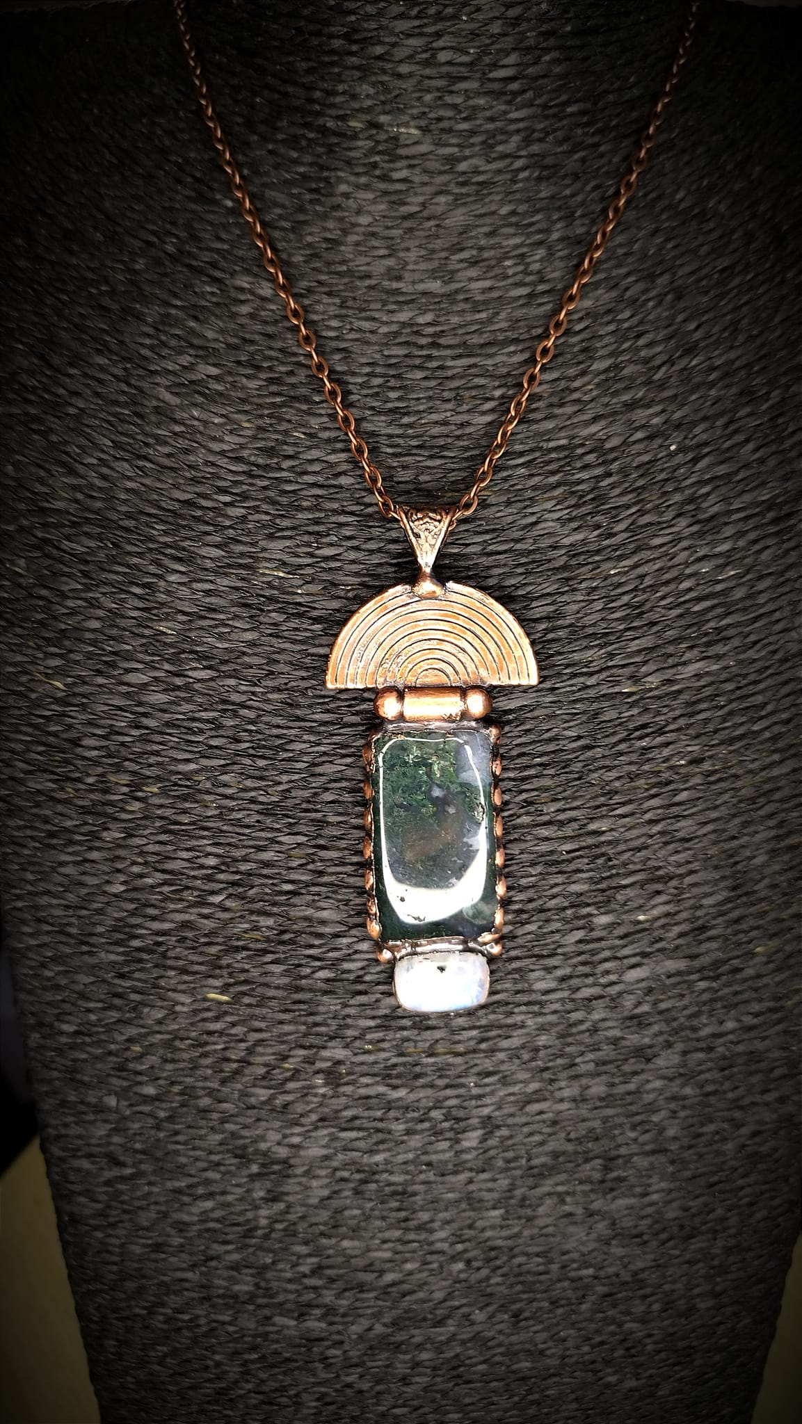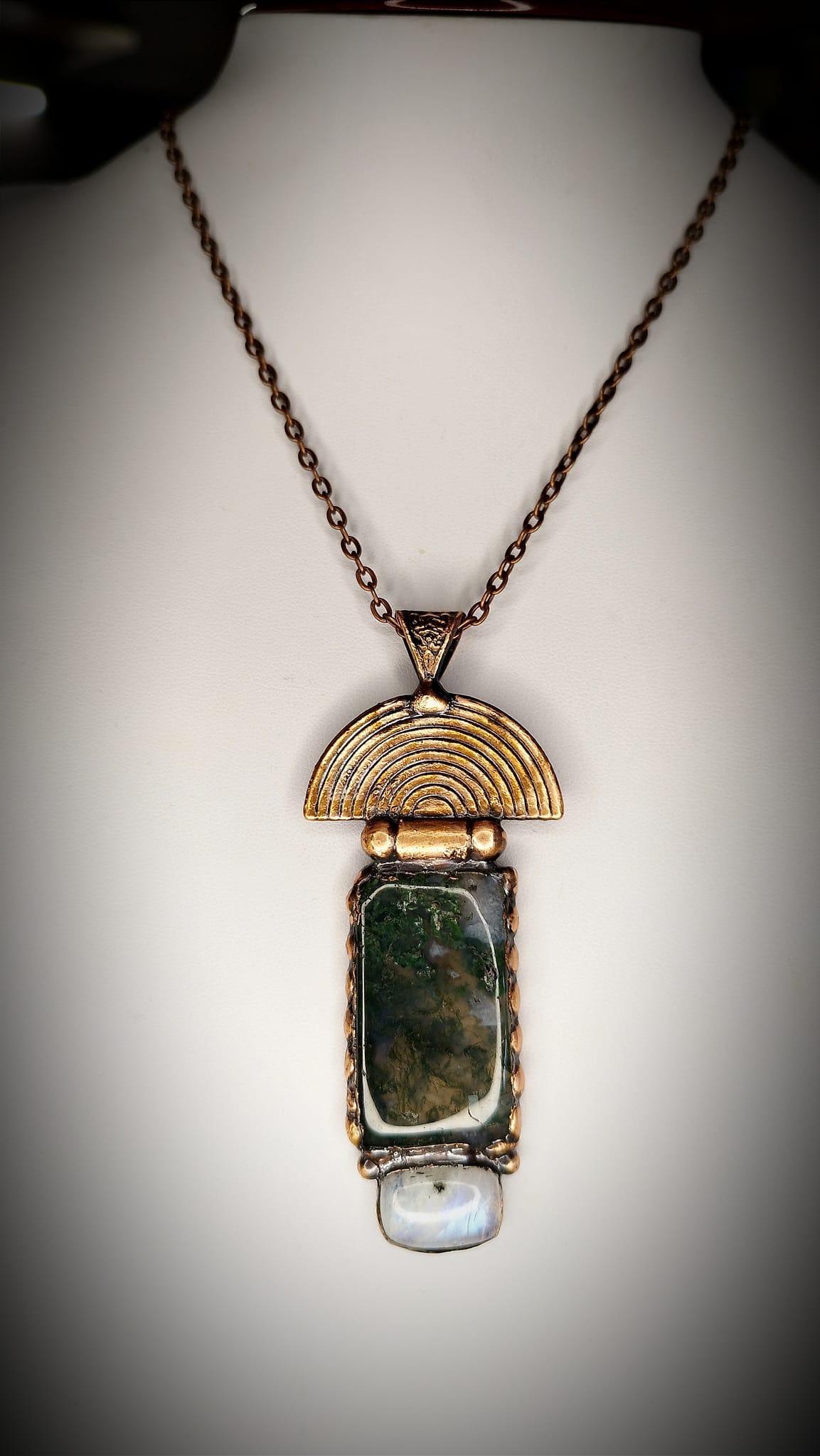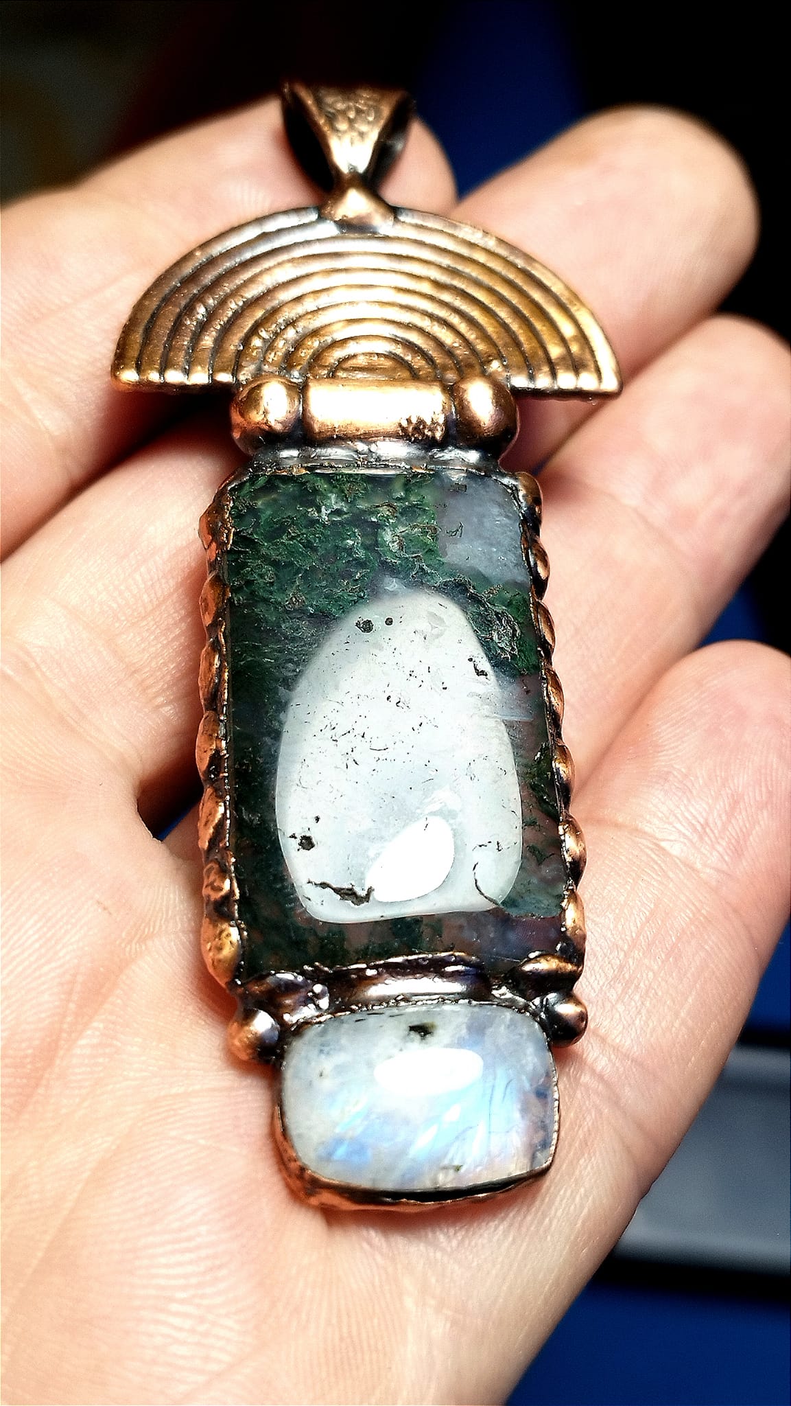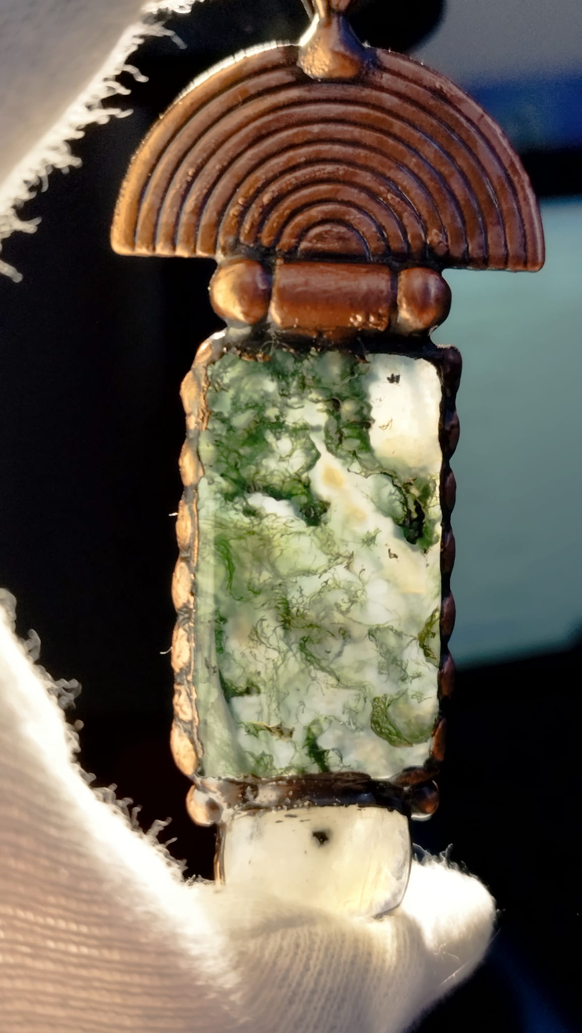 Představuji talisman zhotoven metodou galvanoplastika – pokovení jehož součástí jsou dva minerály achát mechový