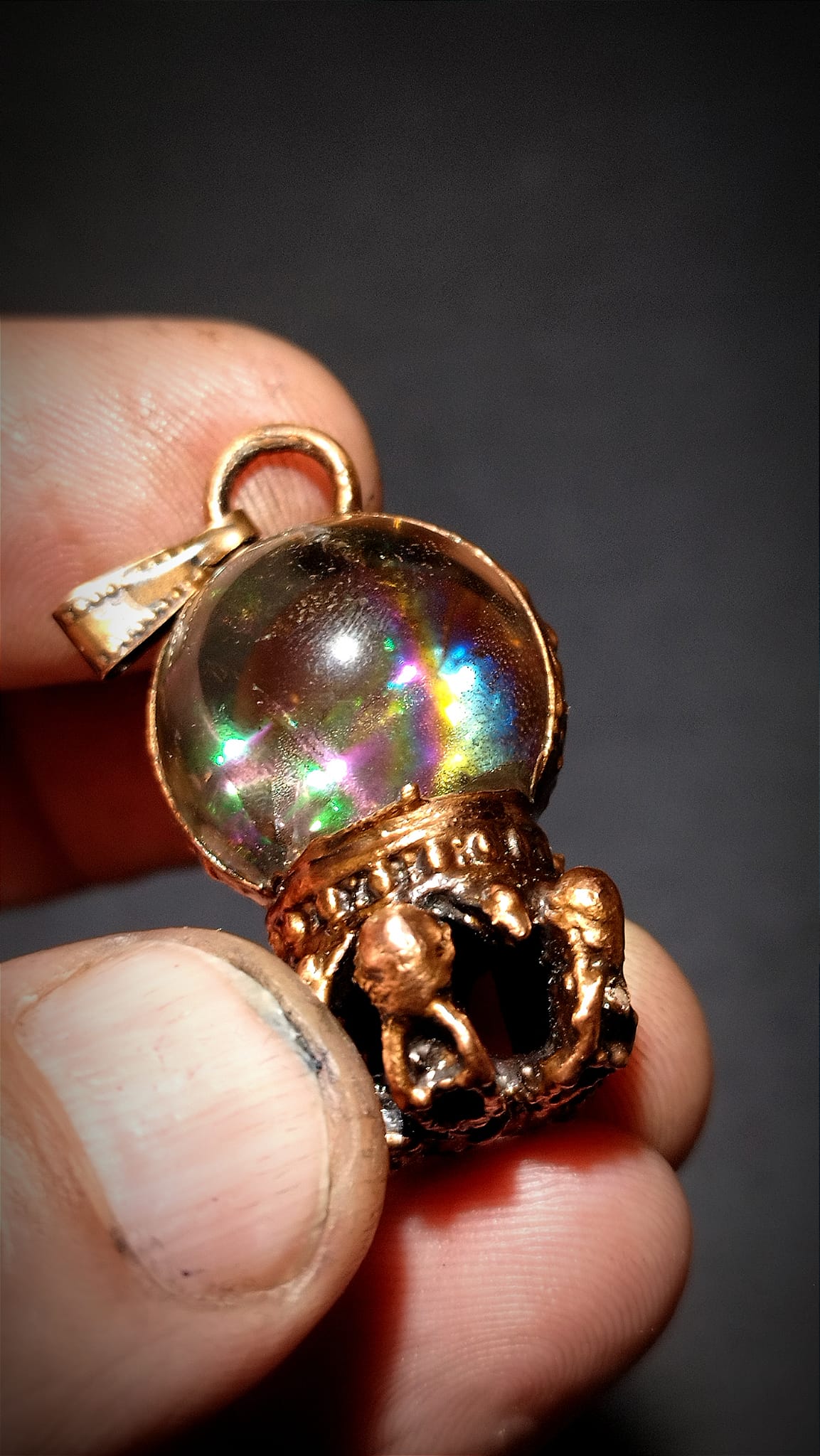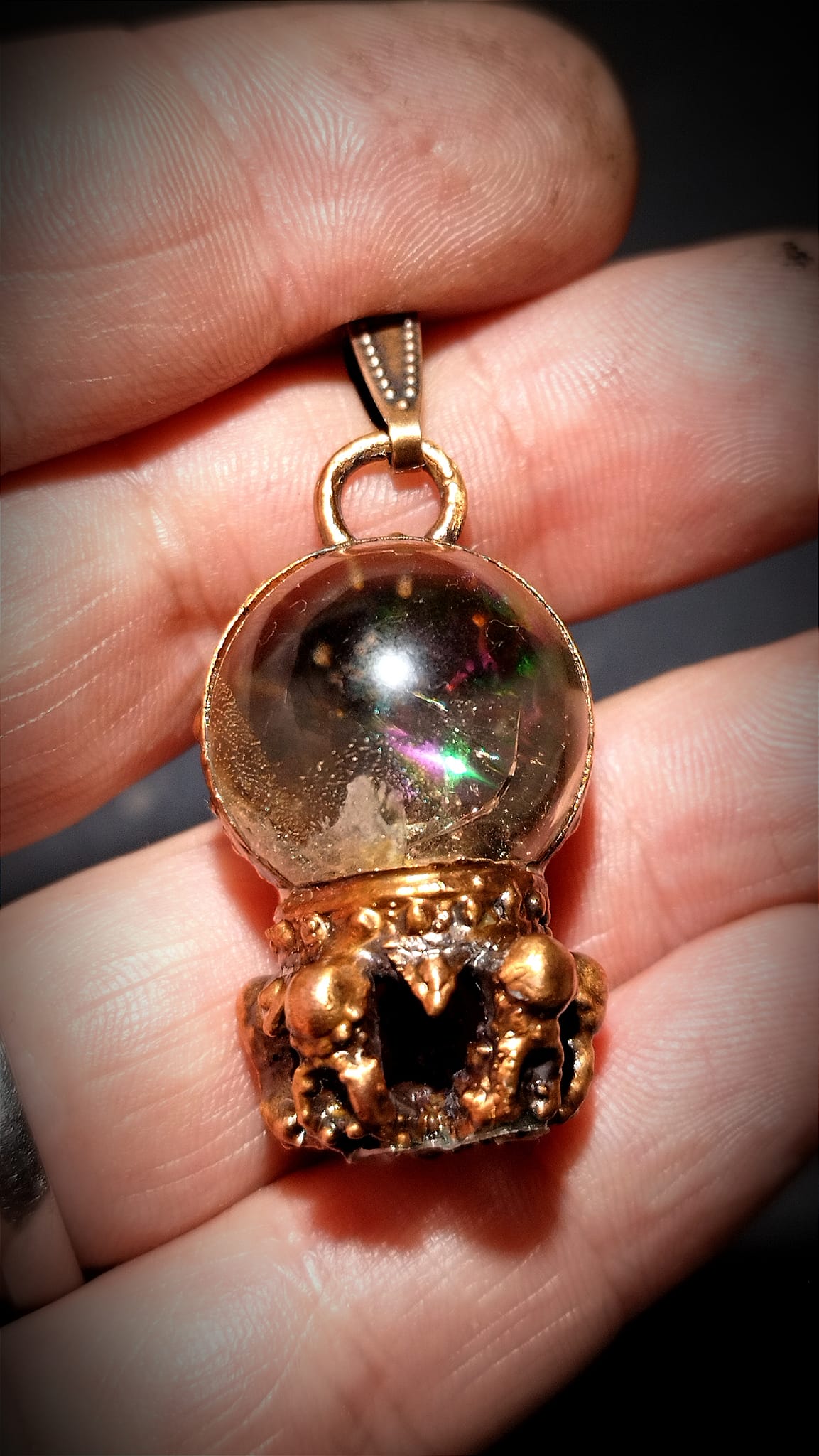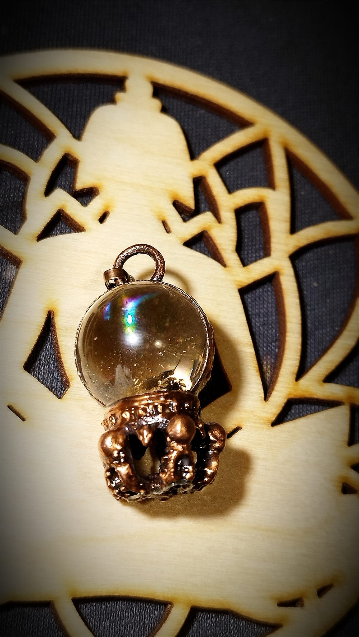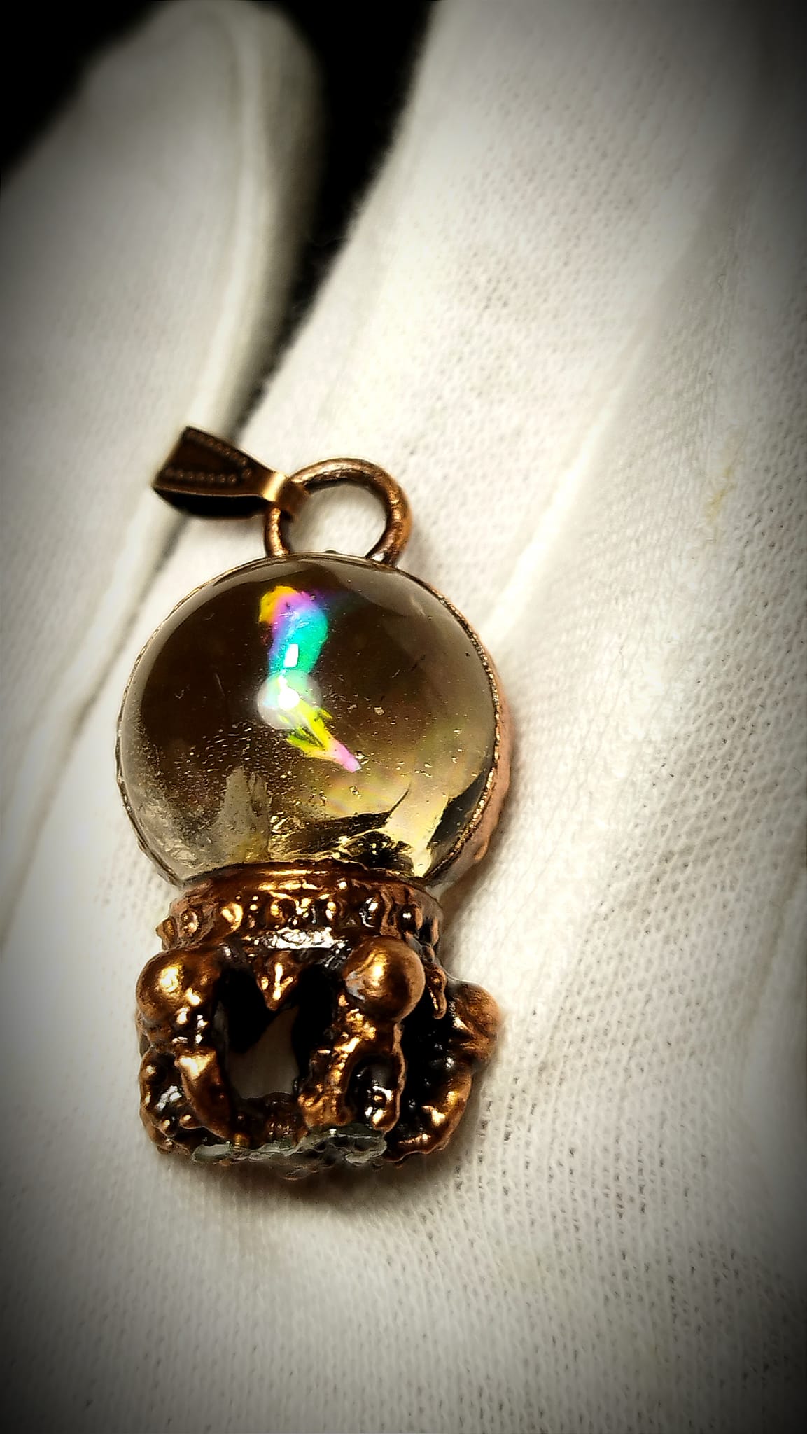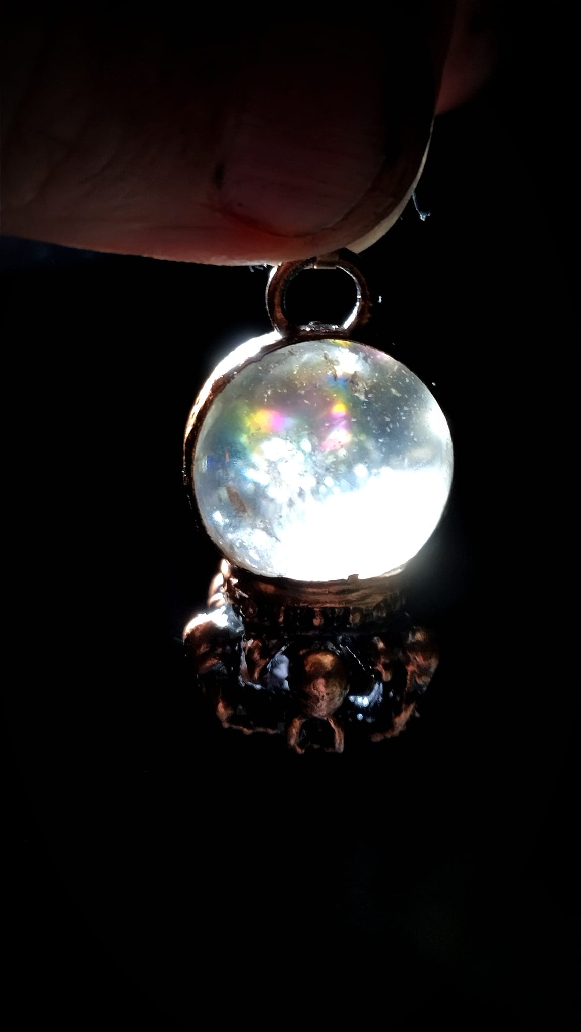 Představuji Talisman ,jeho součástí je kulička záhnědy,ve které se velmi krásně láme světlo a tím dochází k duhovému spektrálnímu efektu