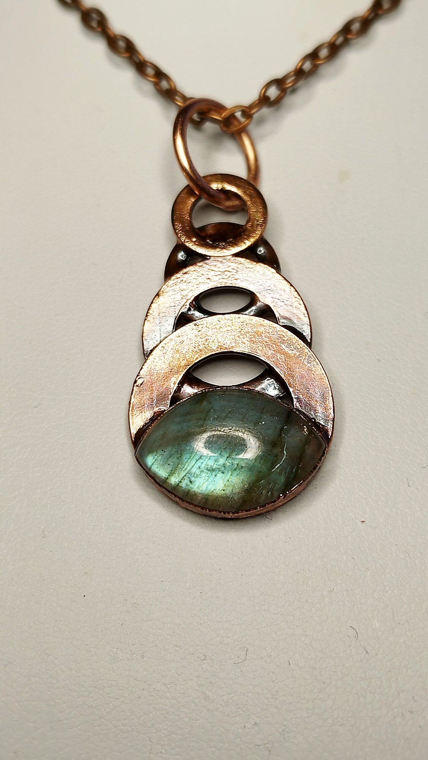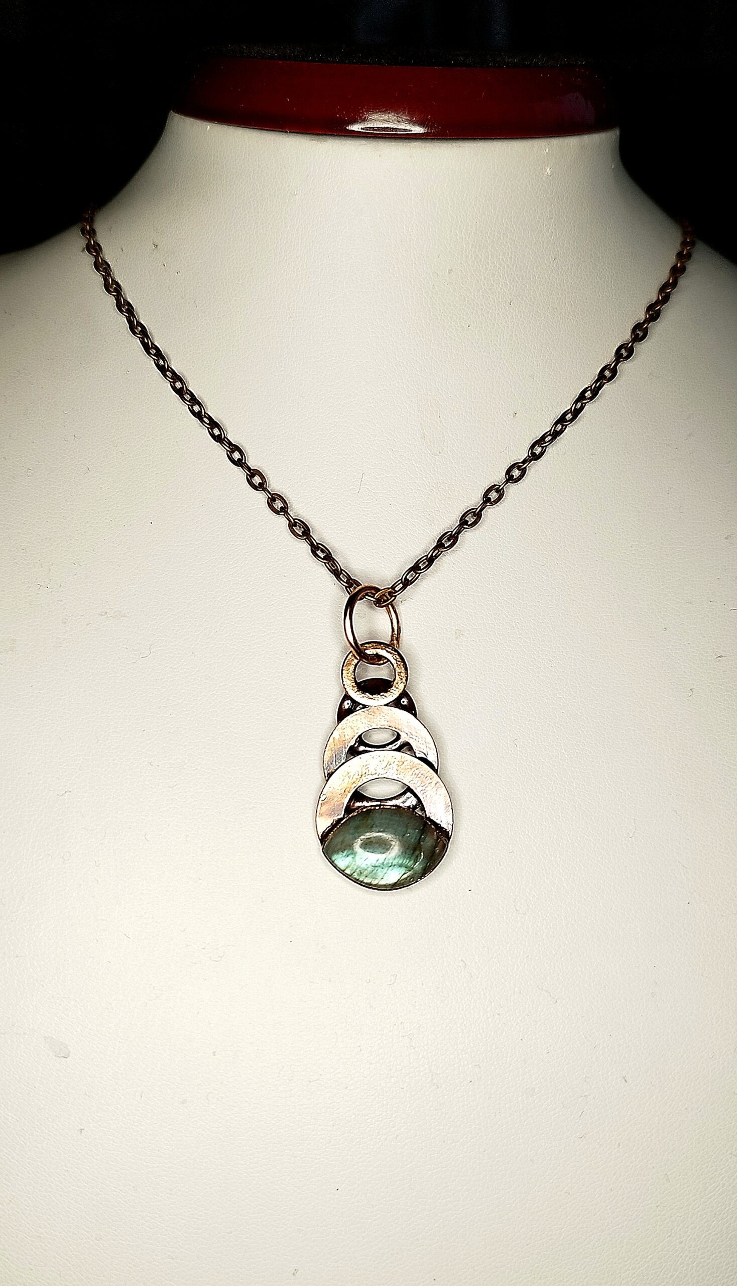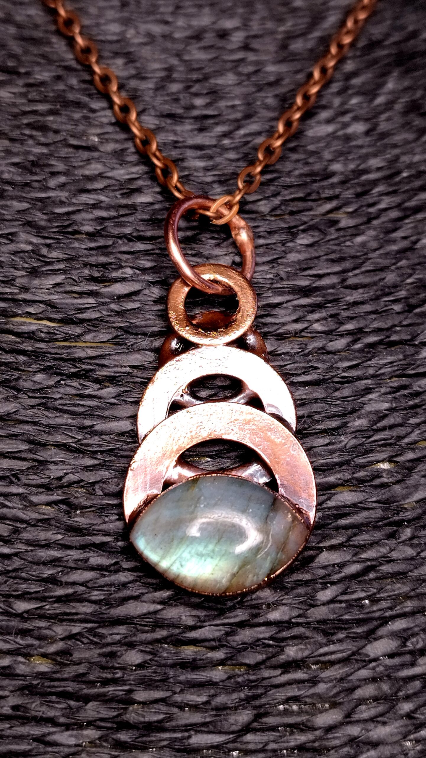 Tento talisman je dokonalým příkladem originálního rukopisu dílny Sirius, která spojuje přírodní krásu minerálů s uměním ručního zpracování. Design evokuje symboliku měsíčních cyklů a harmonie, což vytváří hluboké spojení s přírodními silami. Kombinace labradoritu s mědí zdůrazňuje kontrast mezi jemností a silou, čímž vzniká harmonický celek, jenž osloví nejen vaše smysly, ale i duši.